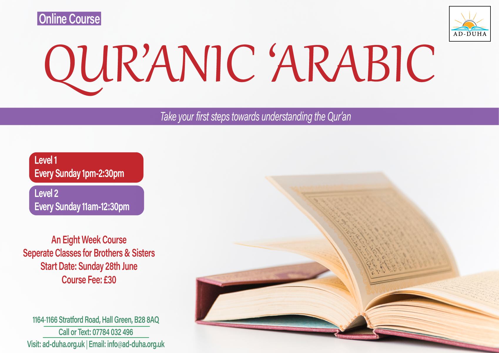 Living in a non-Arabic speaking environment most of us encounter Arabic in the written form and long for the ability to understand the blessed Quran we recite.