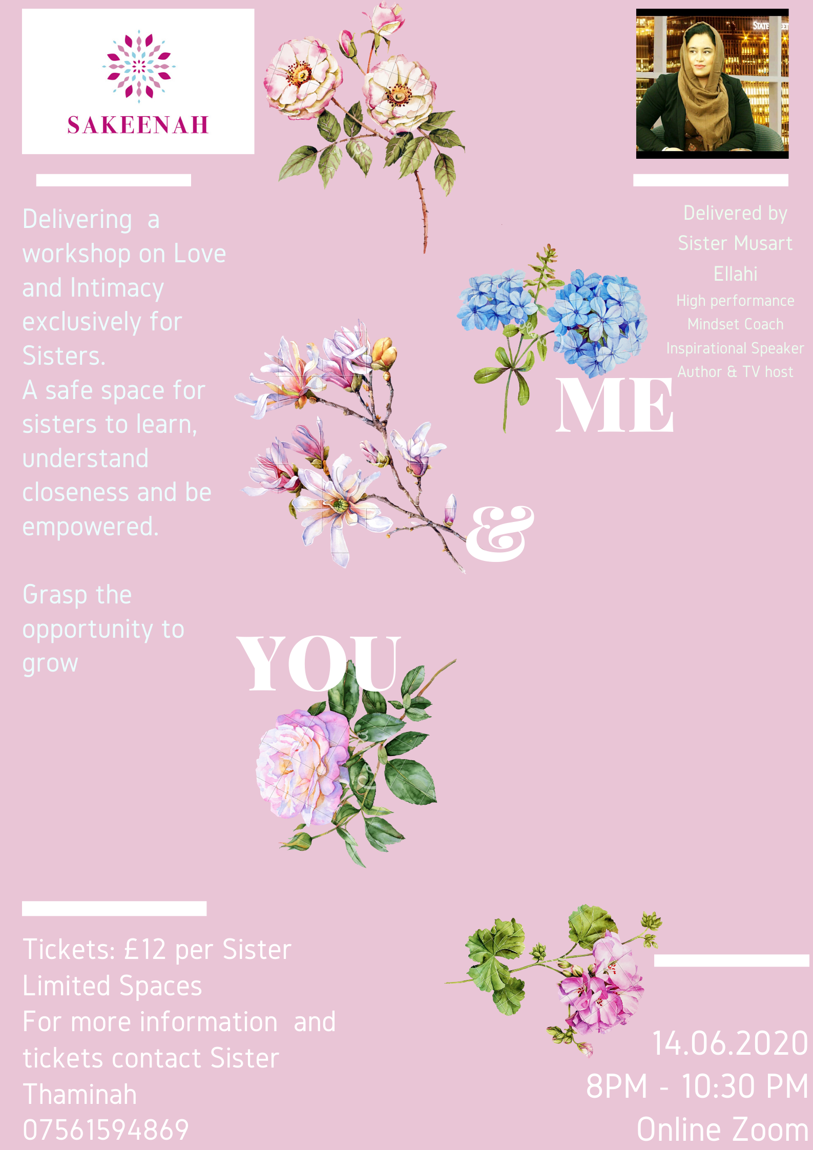 Plus you will be able to get a free one to one diagnostic session with the lovely, amazing Sister Musart Ellahi who is a successful Mindset Coach, Author and TV Host. She will be delivering the workshop in collaboration with Sakeenah Foundation.