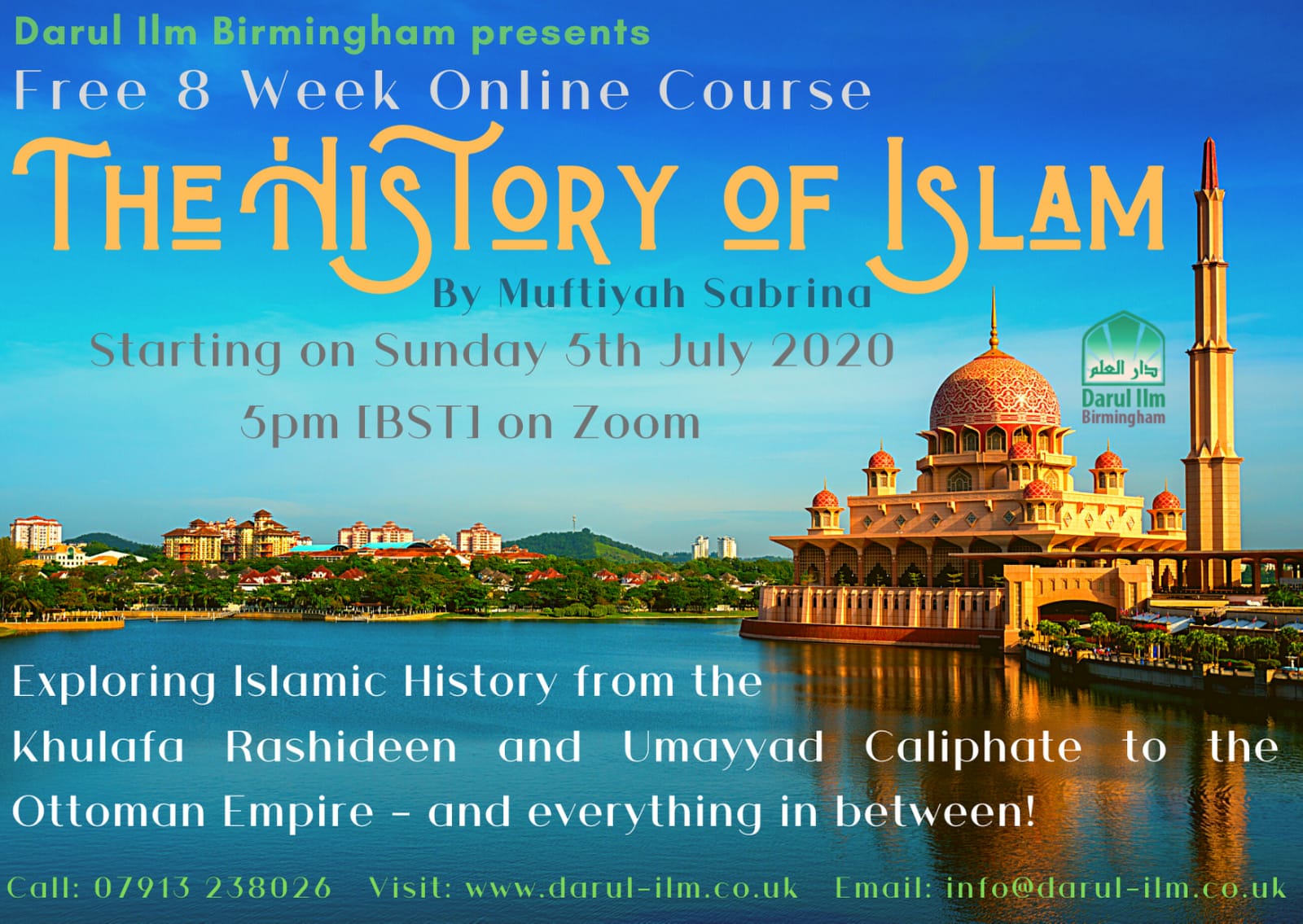 Muftiyah Sabrina will be doing a free 8 week course on Islamic History. She will explore the times when the Muslim empire was at its golden galore and times when it was at it's knees.